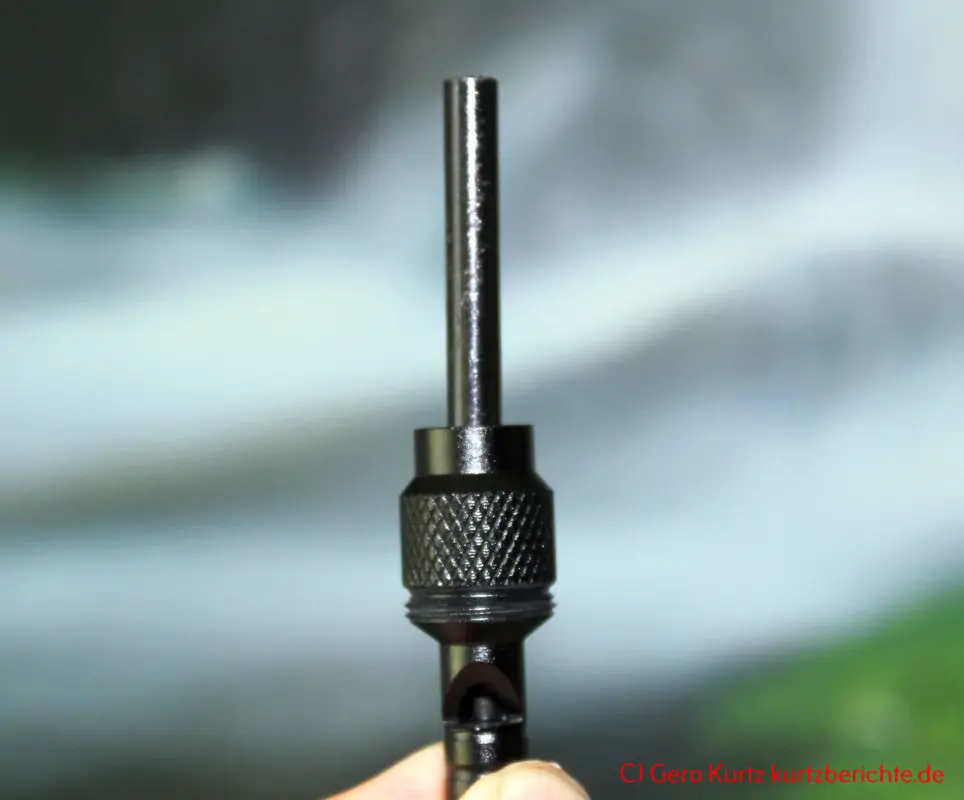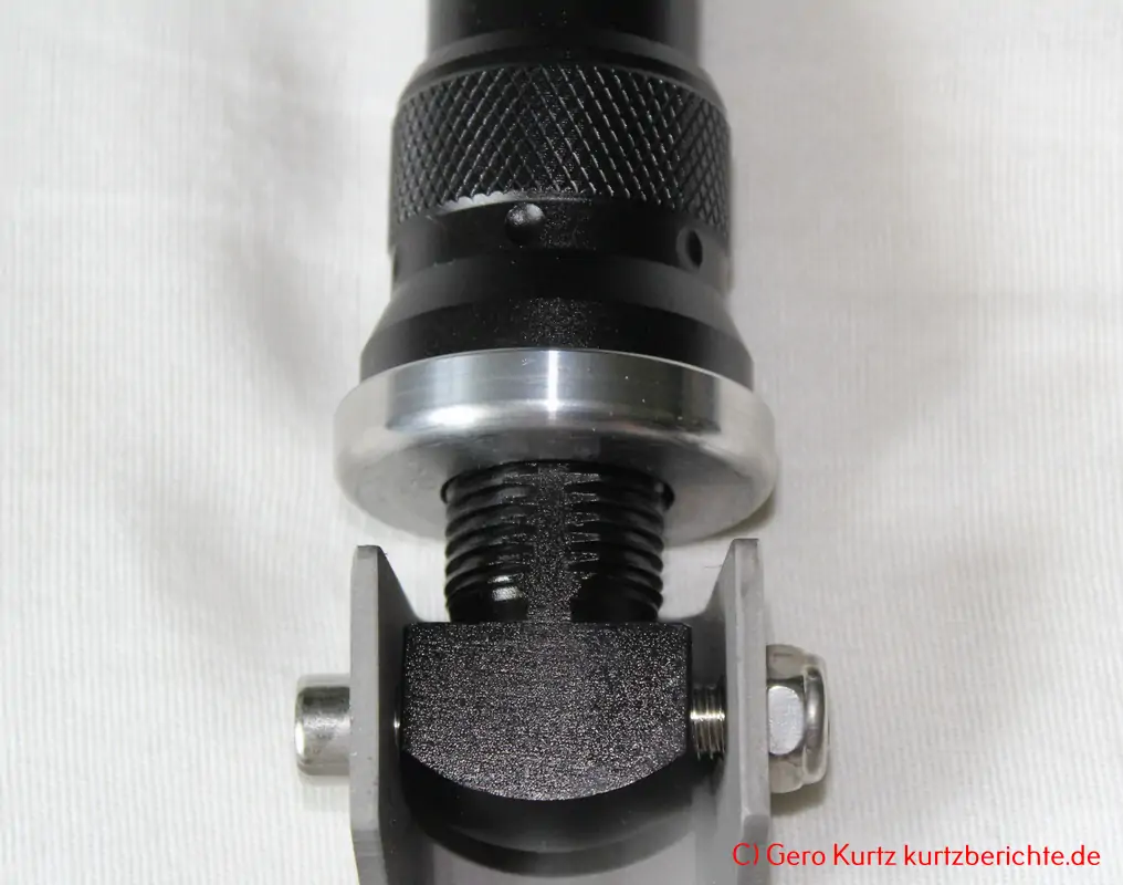 Das Spatenblatt ist in zwei Stellungen abwinkelbar. Außerdem gibt es zusätzlich zum Griff zwei schraubbare Rohrverlängerungen.