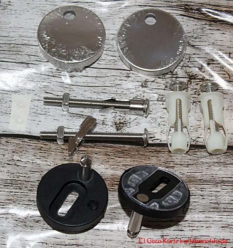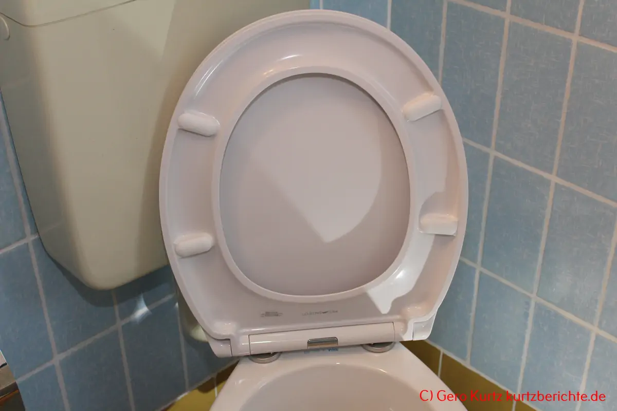 Ansonsten ist die Montage recht einfach. Obwohl: Den perfekten Sitz der Klobrille konnte ich nicht herstellen, da die Stifte dann genau in den Löchern hätten sein müssen. Diese sind ja aber etwas seitlich versetzt. Na gut, ist ja nicht schlimm, wenn sie vorn eine Kleinigkeit drübersteht.