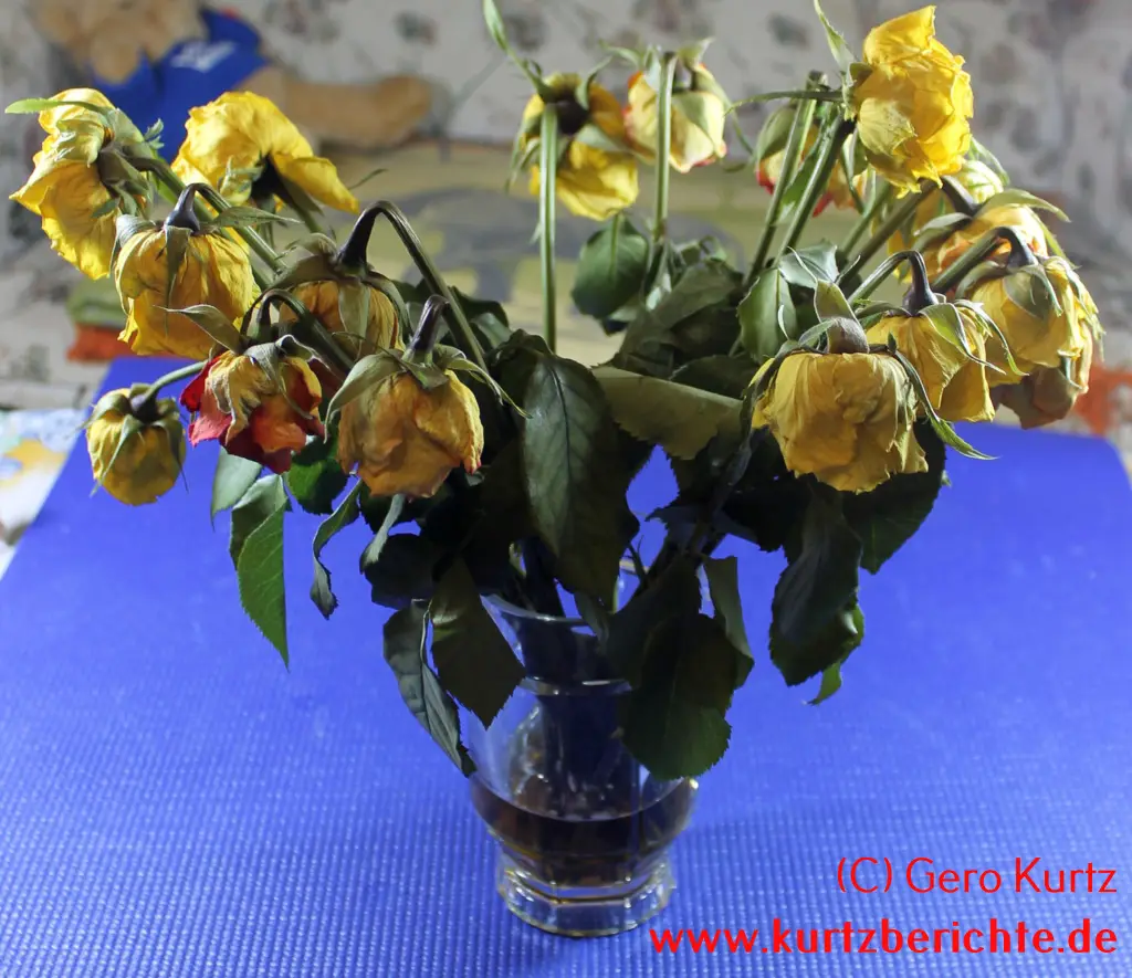 Aufpassen, dass kein anderes Mitglied der Familie den Blumen frisches Wasser gibt. Am besten einen Zettel an die Blumenvase heften!!!