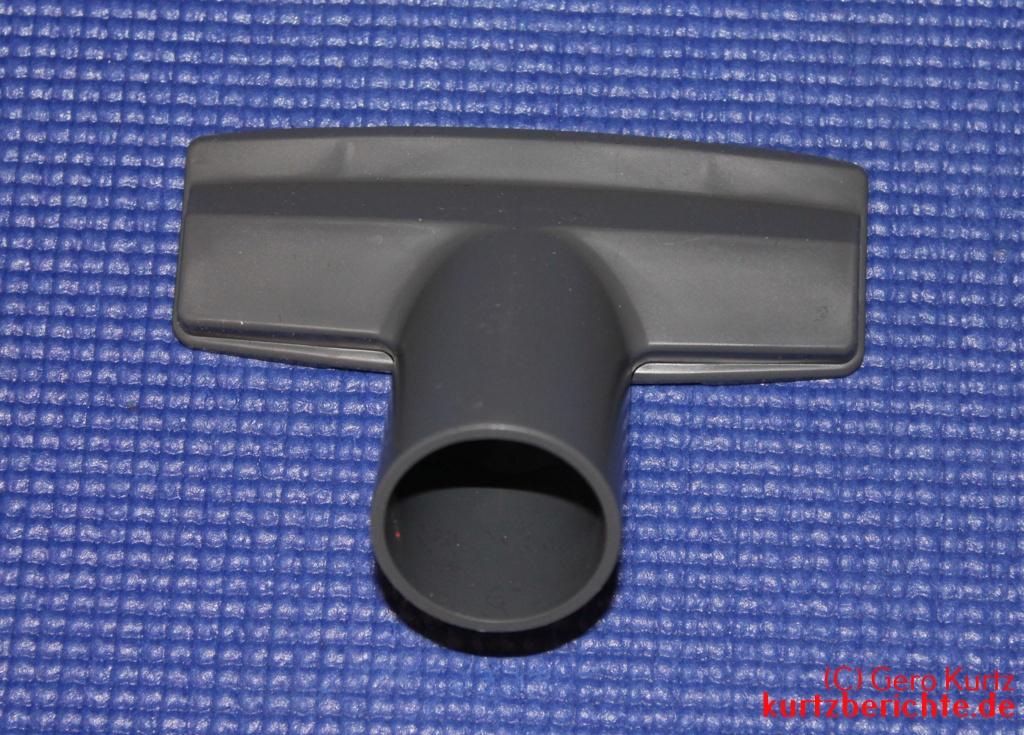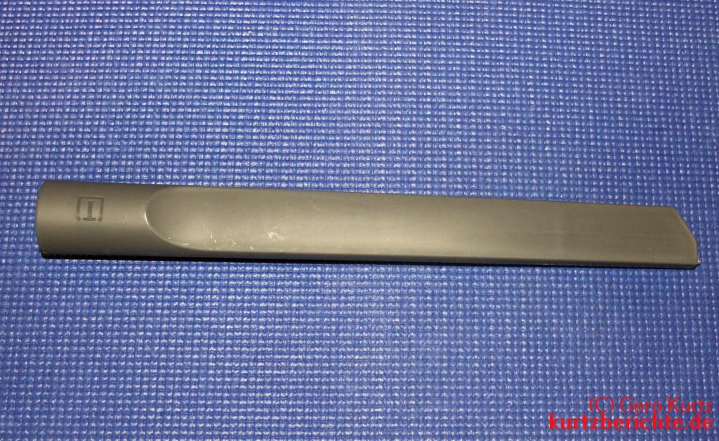 Die Fugendüse besteht aus einem 36 cm langen Plastikrohr, was sich zum Ende hin stark verjüngt. Diese kann auf den Plastikadapter des Saugschlauches aufgesetzt werden und dient, wie der Name schon sagt, zum Aussaugen von Fugen bzw. Ecken usw. wo man mit den normalen Aufsätzen nicht hinkommt.