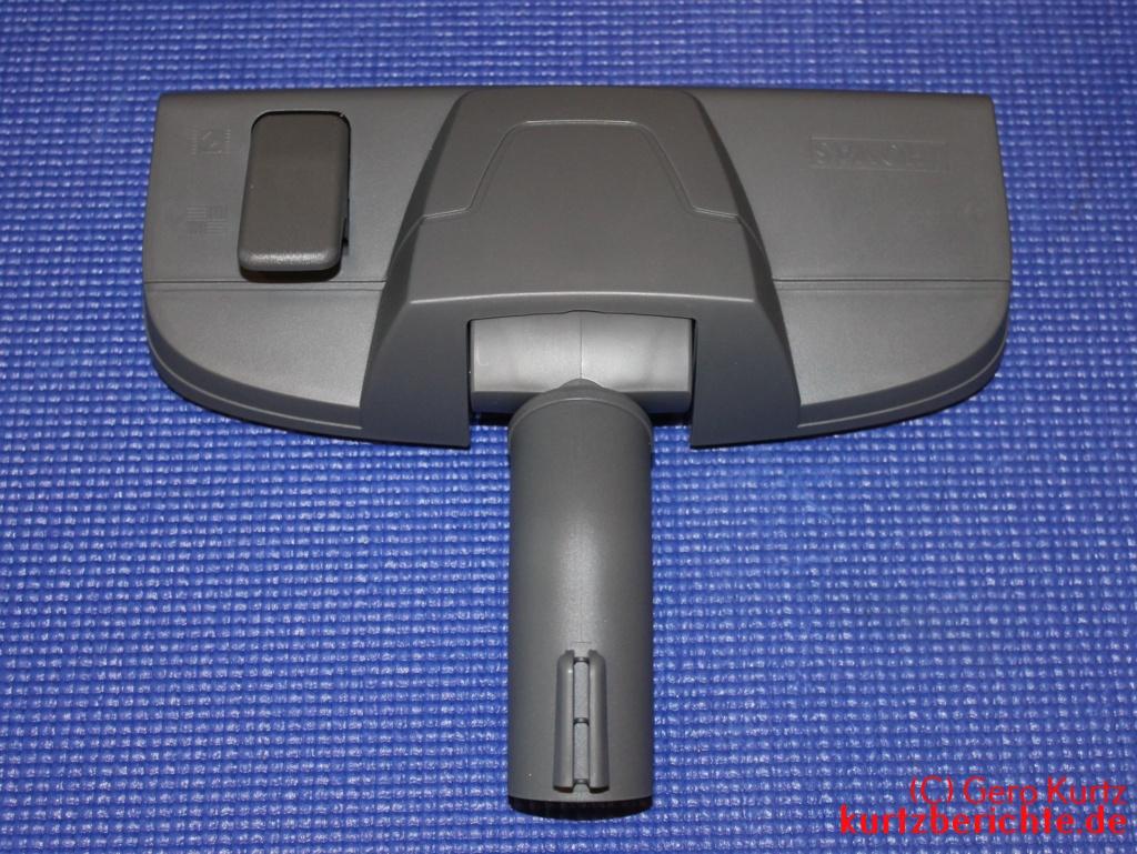 Die Bodendüse (Clean Light) besteht aus schwarzer Plastik und kann am Teleskoprohr angeschlossen werden. Sie hat eine Breite von etwa 27 cm.