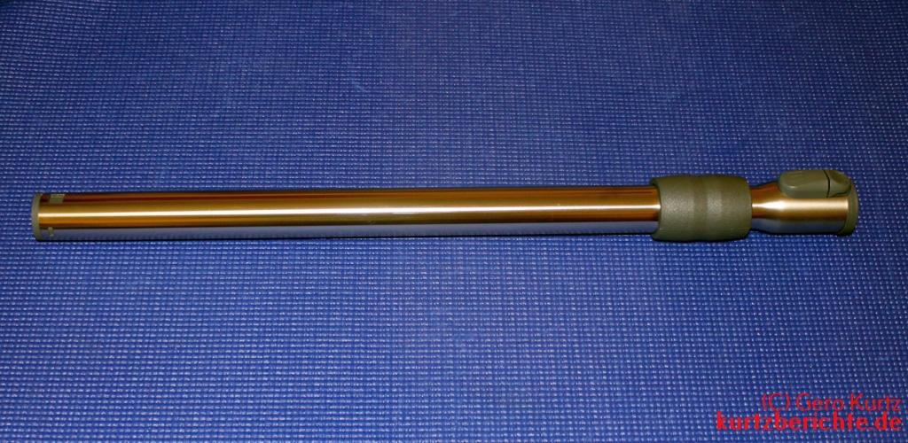 Das Teleskoprohr kann heraus gezogen werden. Die Länge beträgt etwa 59-97 cm. Zum Heraus- und Hineindrücken einfach am grauen Ring des Teleskoprohres anfassen.