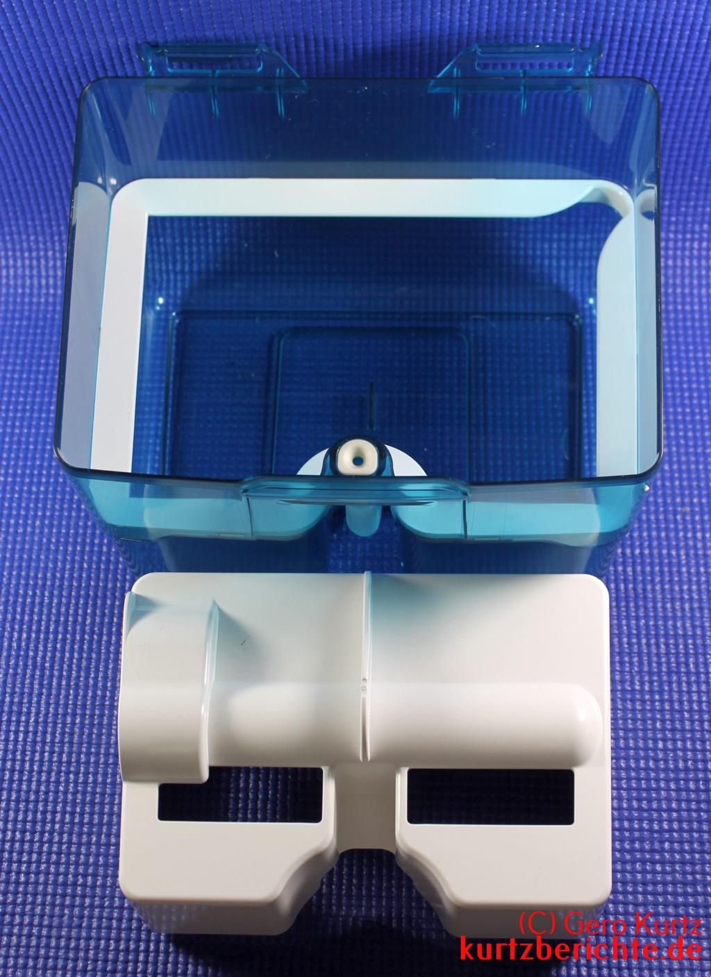 Zum Filtern über Wasser oder zum Saugen von Flüssigkeiten gibt es die Aqua-Box. Diese ist unten blau und der Deckel oben weiß. Zudem gibt es dafür noch den aus weißer Plastik bestehenden Nasssaugeinsatz.