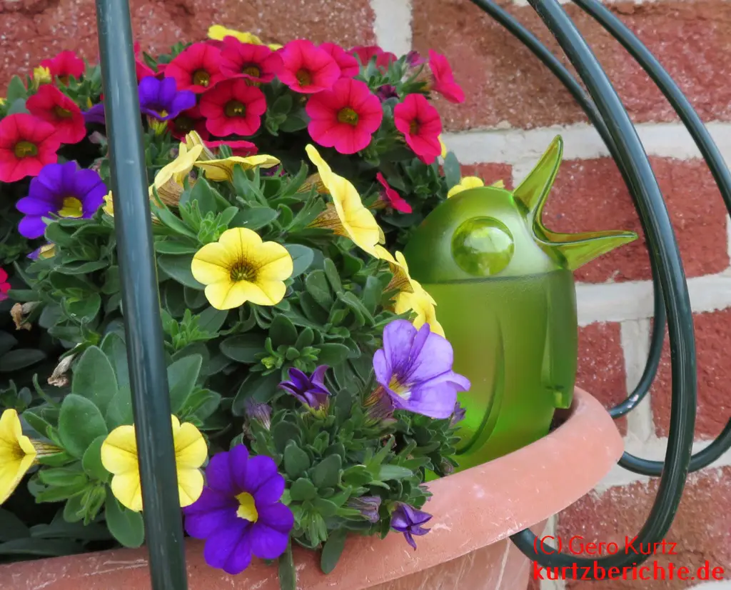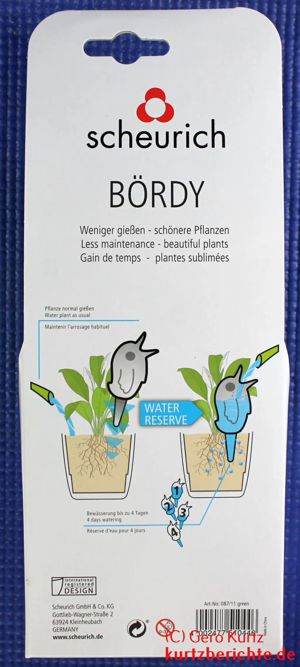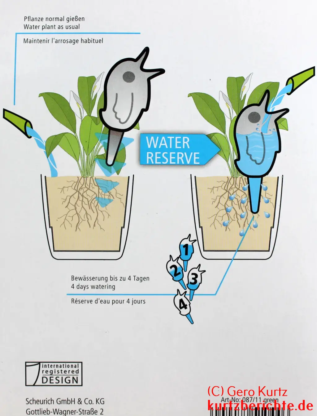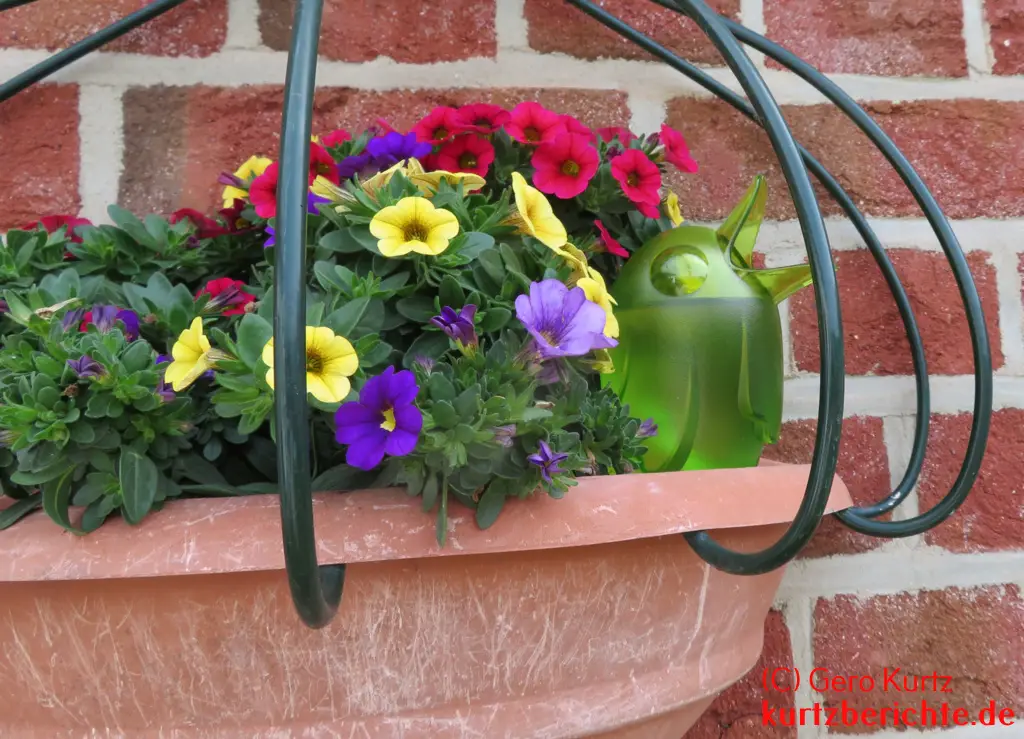 Nun gibt es Produkte von der Firma Scheurich, welche dies verhindern sollen. Das ist eine Gießwasserreserve mit einem Plastikbehälter in Form eines Vogels (gibt es auch in anderen Formen), mit einem Tonkegel, welcher das Wasser an die Erde bzw. die Wurzeln der Pflanze langsam abgibt. Die sogenannten Bördys gibt es in unterschiedlichen Größen, je nachdem, wie lange sie die Pflanze mit Wasser versorgen sollen.