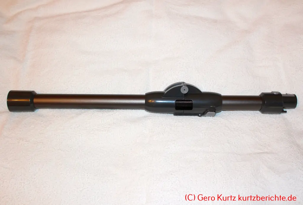Knick-Verlängerungsrohr: Das Verlängerungsrohr hat eine Länge von 68 cm. Es besitzt im oberen Drittel einen grauen Hebel, mit dessen Hilfe das Rohr geknickt werden kann.