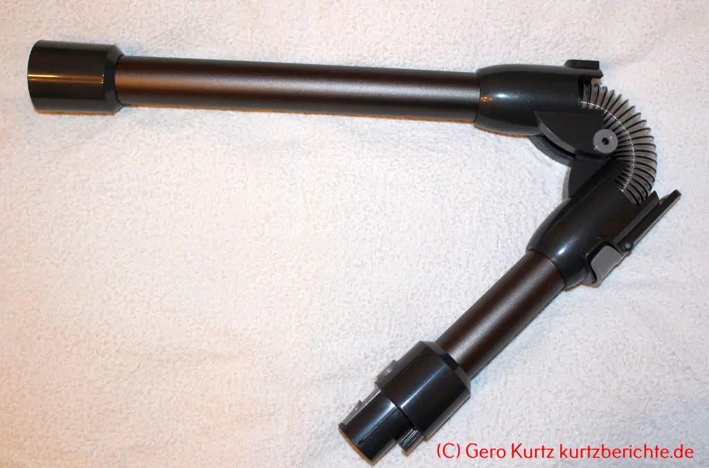Eine Besonderheit dieses Staubsaugers ist die Knickfunktion des Saugrohres. Sie ist einfach zu bedienen und ermöglicht das Saugen unter Möbelstücken, ohne sich zu bücken.