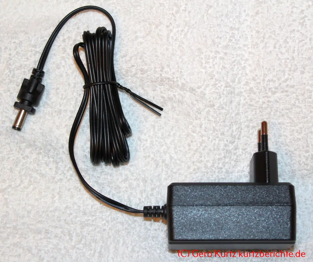 Netzteil mit Ladekabel: Das Netzteil ist ca. 7 cm lang, 4 cm breit und 3 cm tief (ohne Eurostecker). Das Ladekabel hat am Ende einen Klinkensteckeranschluss und ist ca. 1,50 Meter lang.
