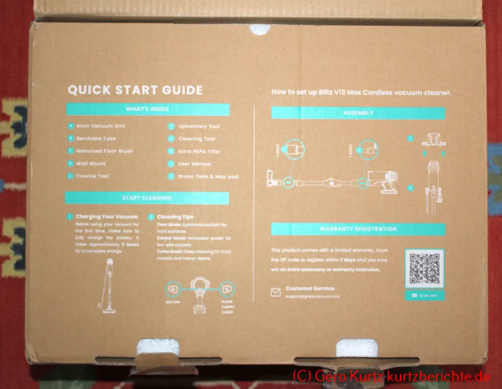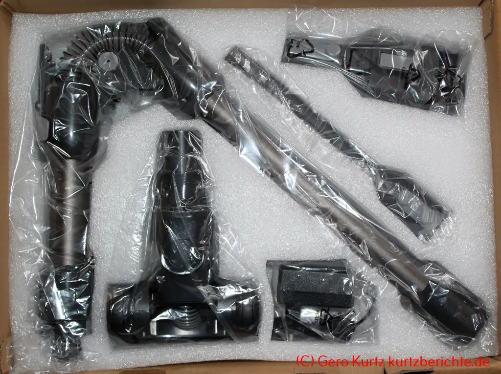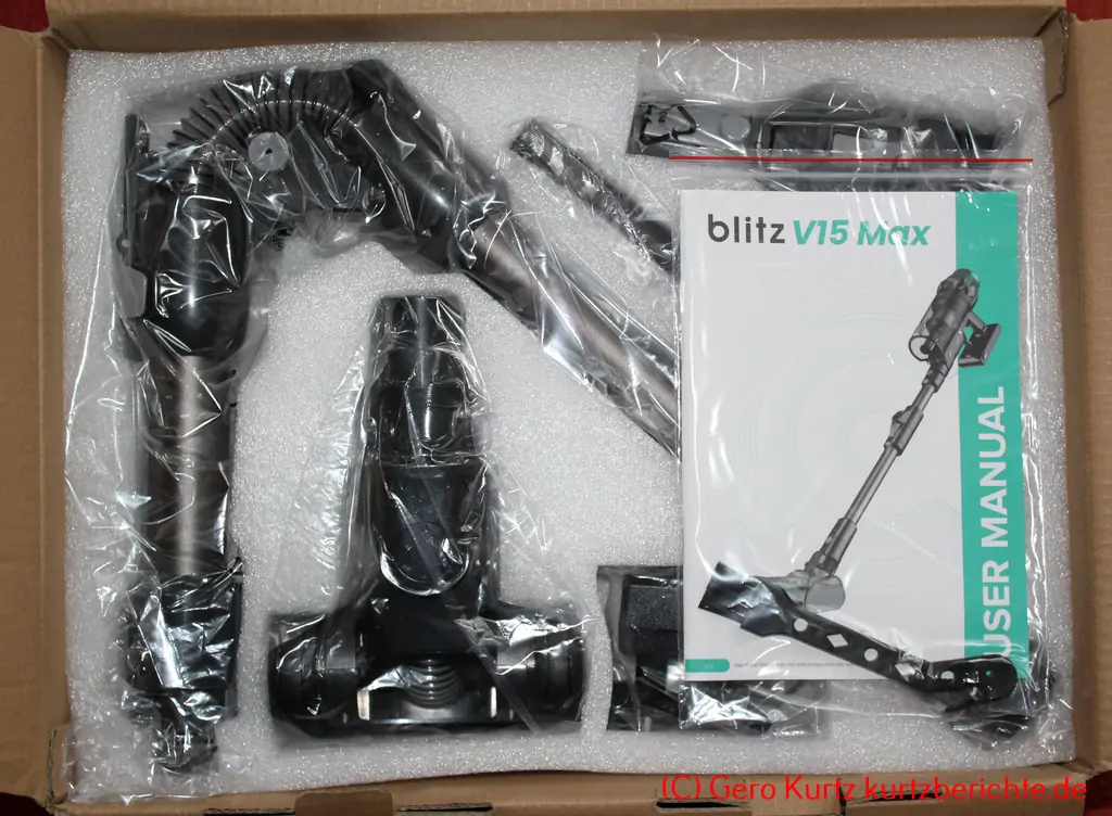 Der Akkustaubsauger Vexilar V15Max wird gut verpackt geliefert. Durch das knickbare Verlängerungsrohr ist die Verpackung schön kompakt. Jedes Teil hat seinen Platz. Die einzelnen Elemente sind stabil und wertig.
