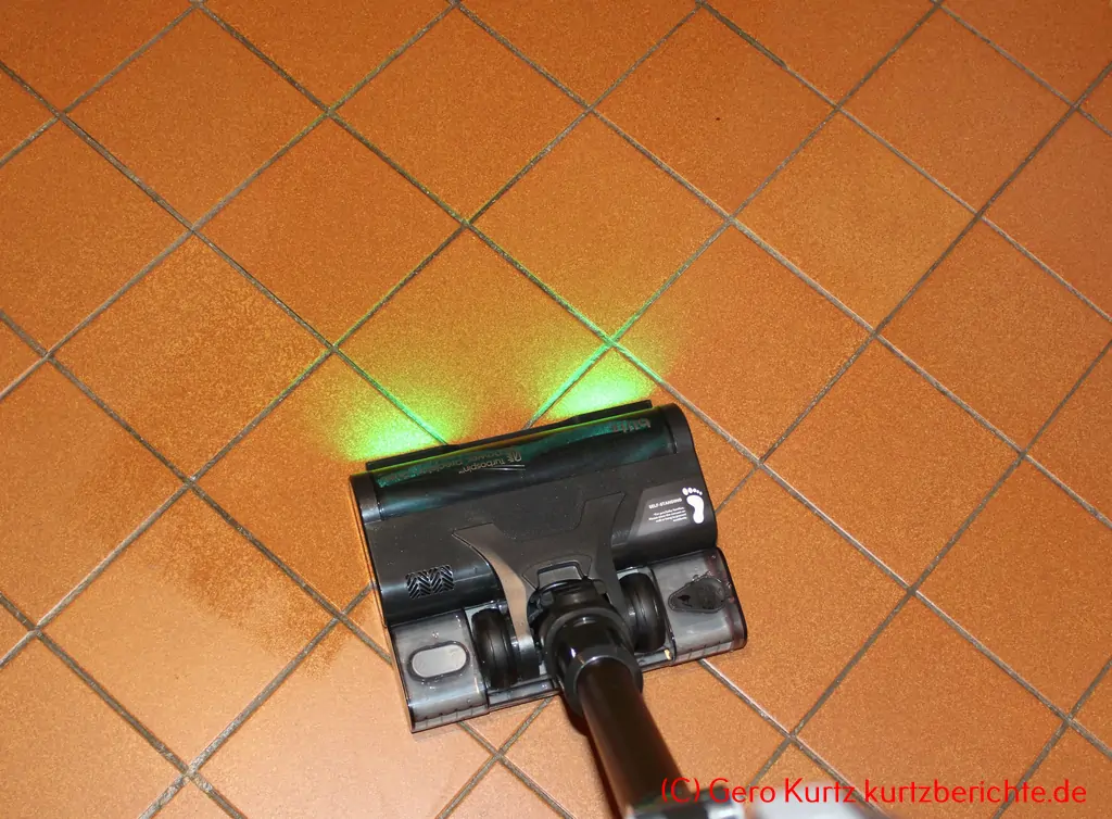 - Bodendüsen mit sich drehenden weichen Bürsten und sechs grünen LEDs