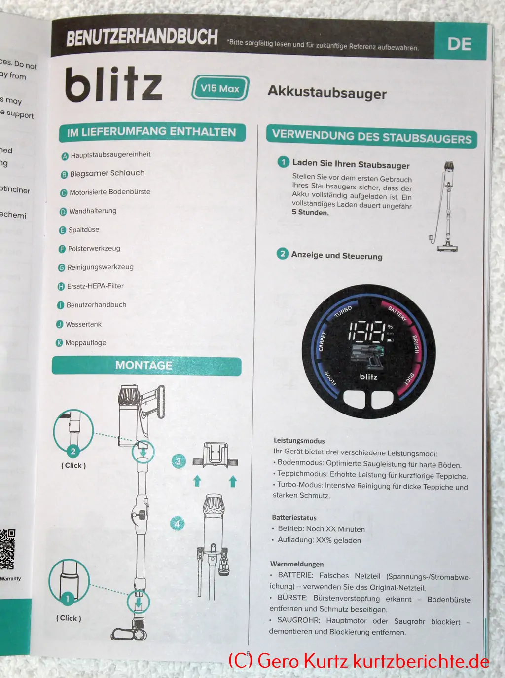 Die Bedienungsanleitung ist auch auf Deutsch verfügbar und ist verständlich auf gutem Papier gedruckt.