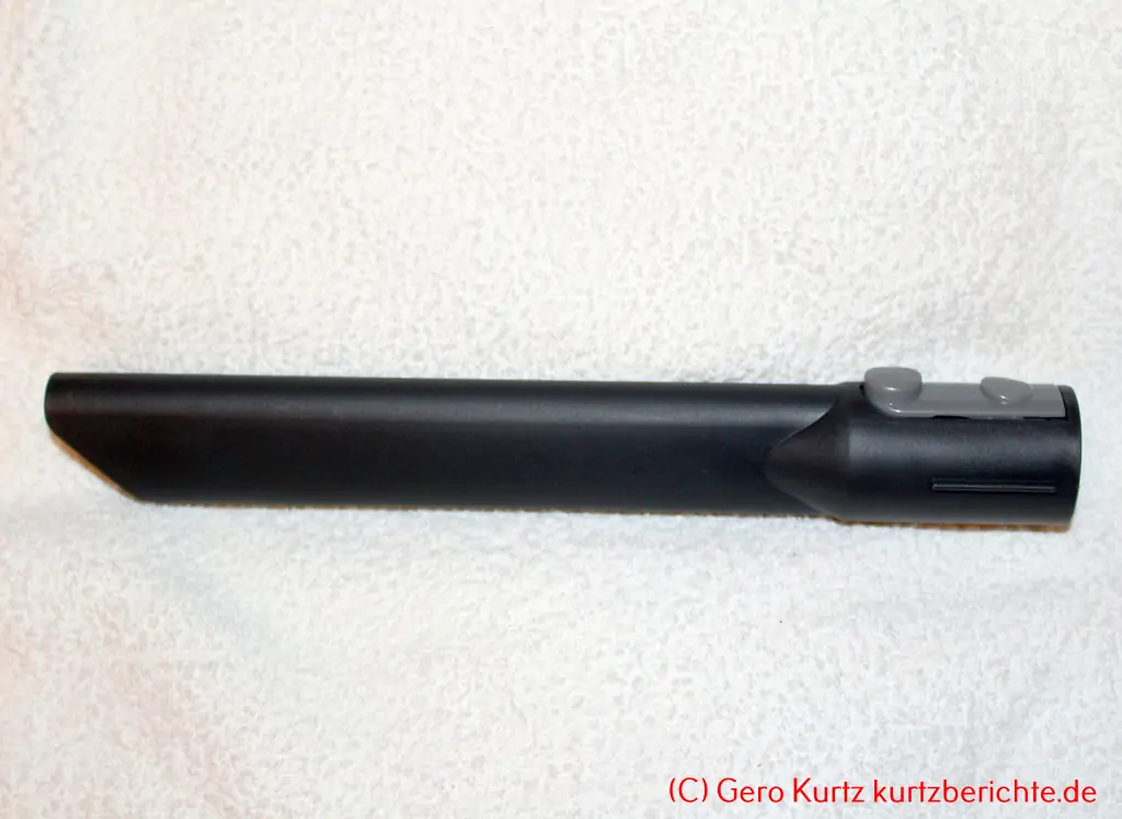 Vom Handgerät geht ein Rohranschluss mit ca. 3,5 cm Innendurchmesser ab, an welchen diverse Zubehörelemente per Klickverschluss angeschlossen werden können.