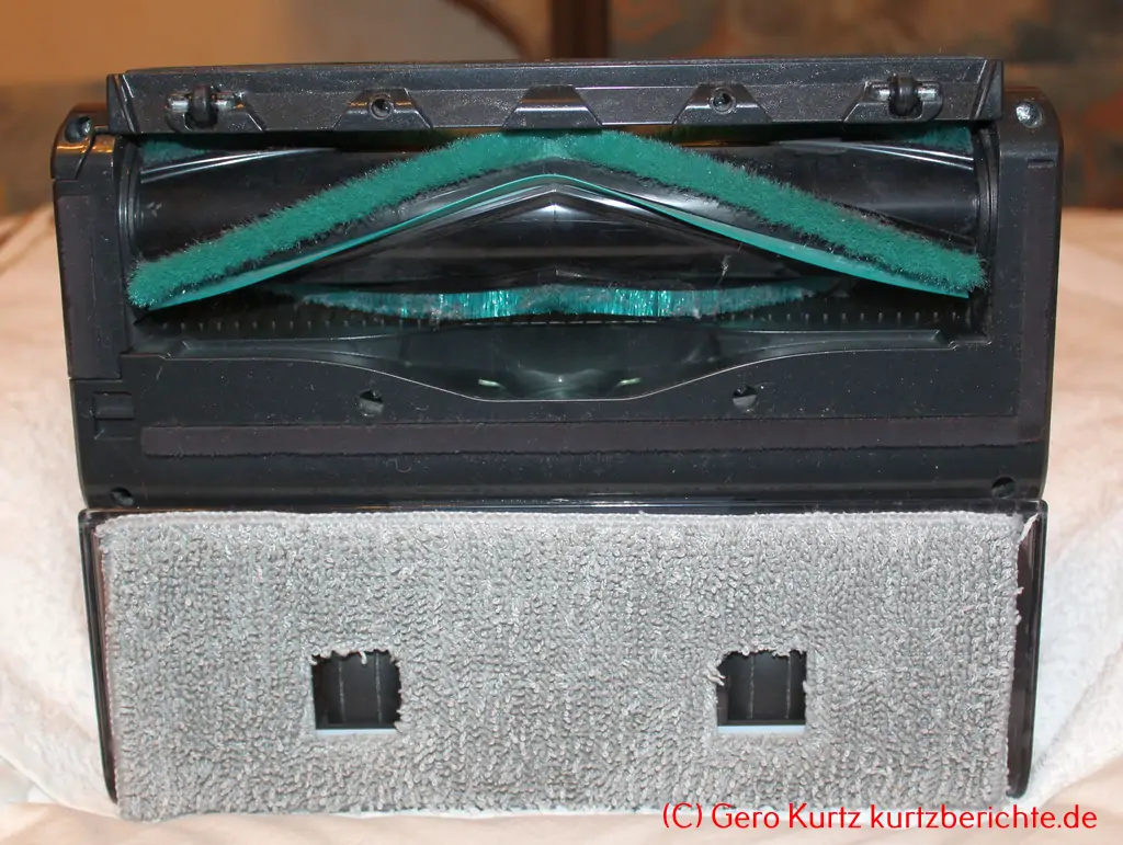 Außerdem kann man zusätzlich noch mit dem Wischmopp den Hartboden in einem Arbeitsgang wischen.