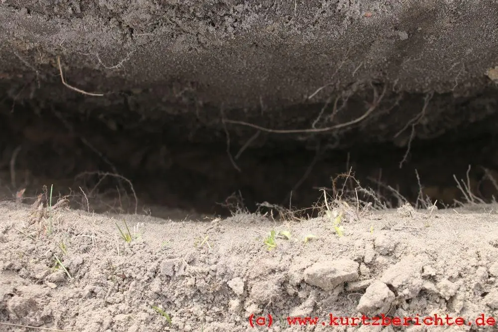 Grabetiefe: 10 bis 60 cm, Nestkammer zur Aufzucht der Jungen, zur Erholung und Nahrungsspeicher, erkennbar an einem besonders großen Erdhügel (Burg).