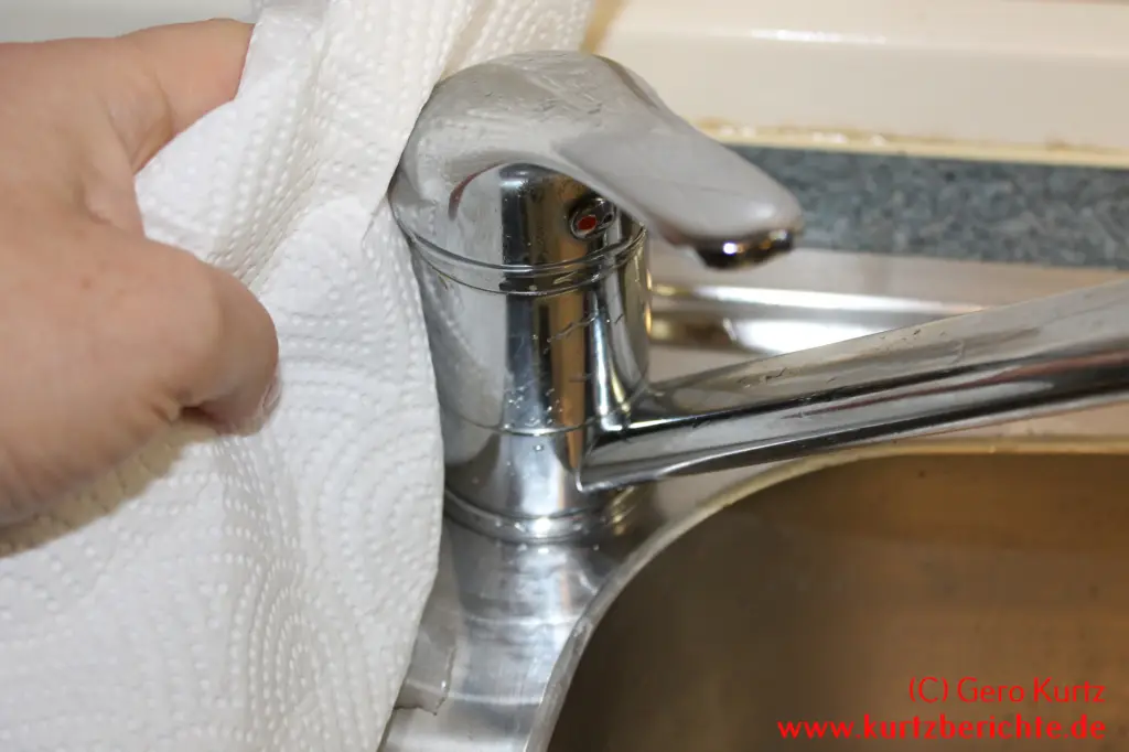Lassen Sie sich nicht täuschen, oft sieht es aus, als würde der Kalk noch da sein, lässt sich aber problemlos abwischen. Daher immer erst testen.
