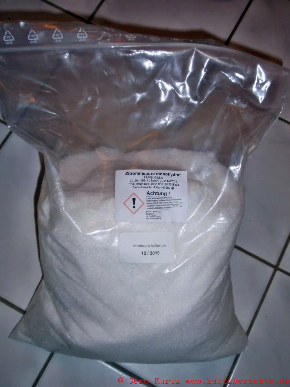 Zitronensäure 5 Kg, reine Lebensmittelqualität E330 kristalin* - die von mir gekaufte Variante