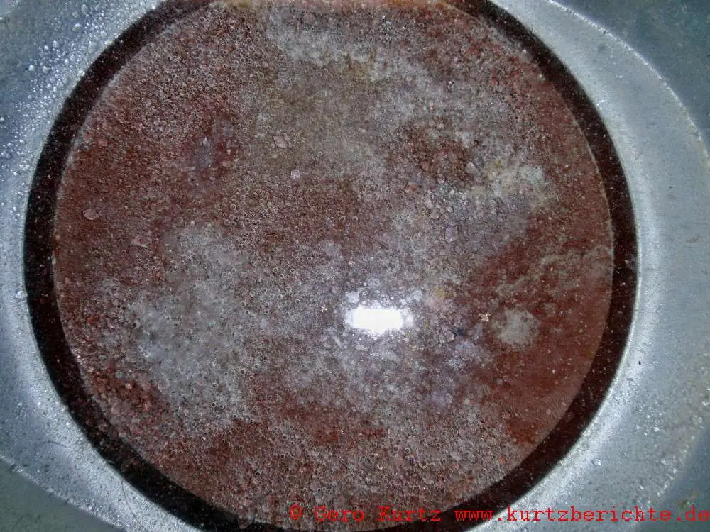 Grundsätzliches: Verwenden Sie möglichst kleine Gefäße, wo die zu entkalkenden Materialien genau hineinpassen. Das spart Wasser und vor allem Zitronensäure. Verwenden Sie höchstens lauwarmes Wasser, da sonst fast unlösliches Kalziumcitrat entstehen kann. Verwenden Sie das Zitronensäurewasser ruhig mehrere Male hintereinander. Solange Bläschen aufsteigen, ist die Säure noch wirksam und baut Kalk ab.