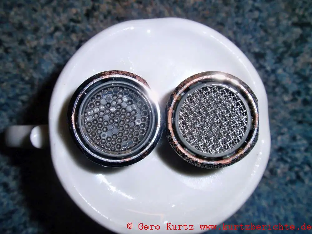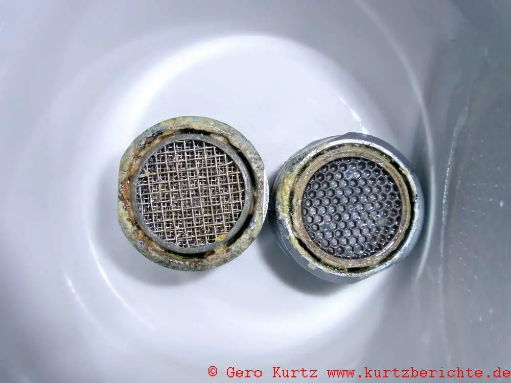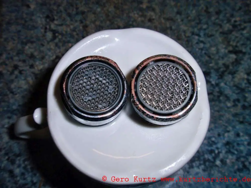 - Entkalkung von Mischdüsen (Perlatoren) an Wasserhähnen und Duschköpfen: Perlatoren abschrauben und in eine Tasse oder kleine Schale geben, zwei bis drei Teelöffel Zitronensäure dazu geben und über Nacht stehen lassen. Dann gut ausspülen, eventuell vorher zerlegen und wieder anbringen - Vorsicht die Gummidichtung nicht verbummeln, sonst tropft es nachher. Der Brausekopf kann angeschraubt bleiben. Hier einfach einen entsprechend großen Eimer Wasser nehmen, und die Dusche mit dem Schlauch dort hineinlegen. Drei Esslöffel Zitronensäure hinzugeben und über Nacht einwirken lassen. Danach gut abschrubben und Dusche einschalten, damit der nächste sich damit nicht den Kopf wäscht :-)