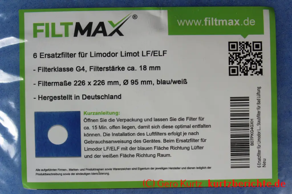 Ich persönlich habe mich für die Ersatzfilter vom FILTMAX-Store* entschieden. Diese passen perfekt und haben zwei Seiten. Die blaue Seite zeigt in Richtung Lüfter und die weiße Seite zeigt zum Raum hin. Außerdem liegen gleich noch Aufkleber bei. Da kann man das Datum hineinschreiben, wann der Filter getauscht wurde oder auch wann der nächste Tausch fällig ist.